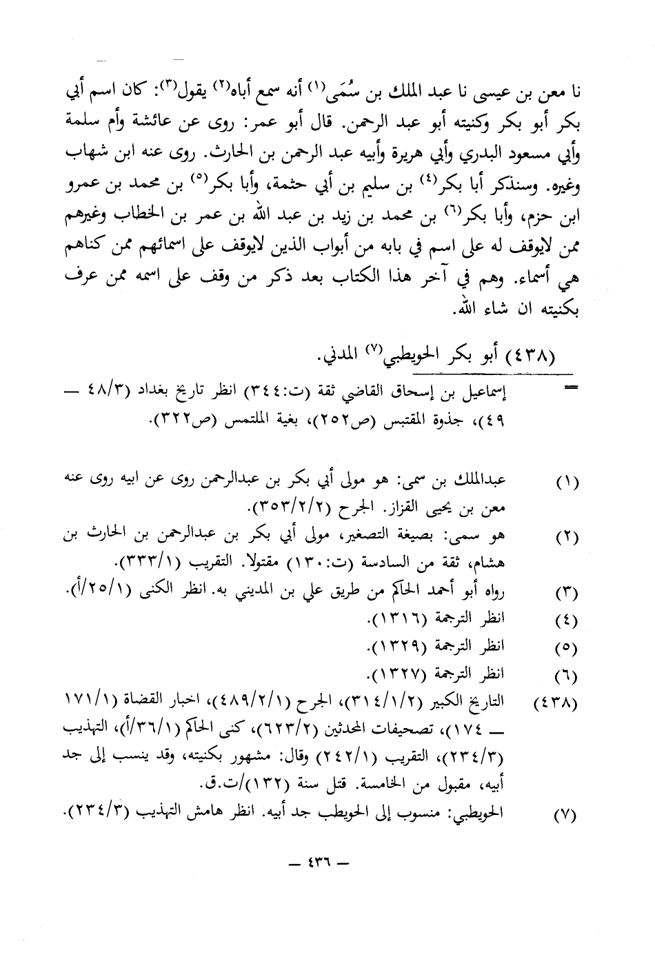 (¬7) الحويطبى: منسوب إلى الحويطب جد أبيه. انظر هامش التهذيب (3/ 234).