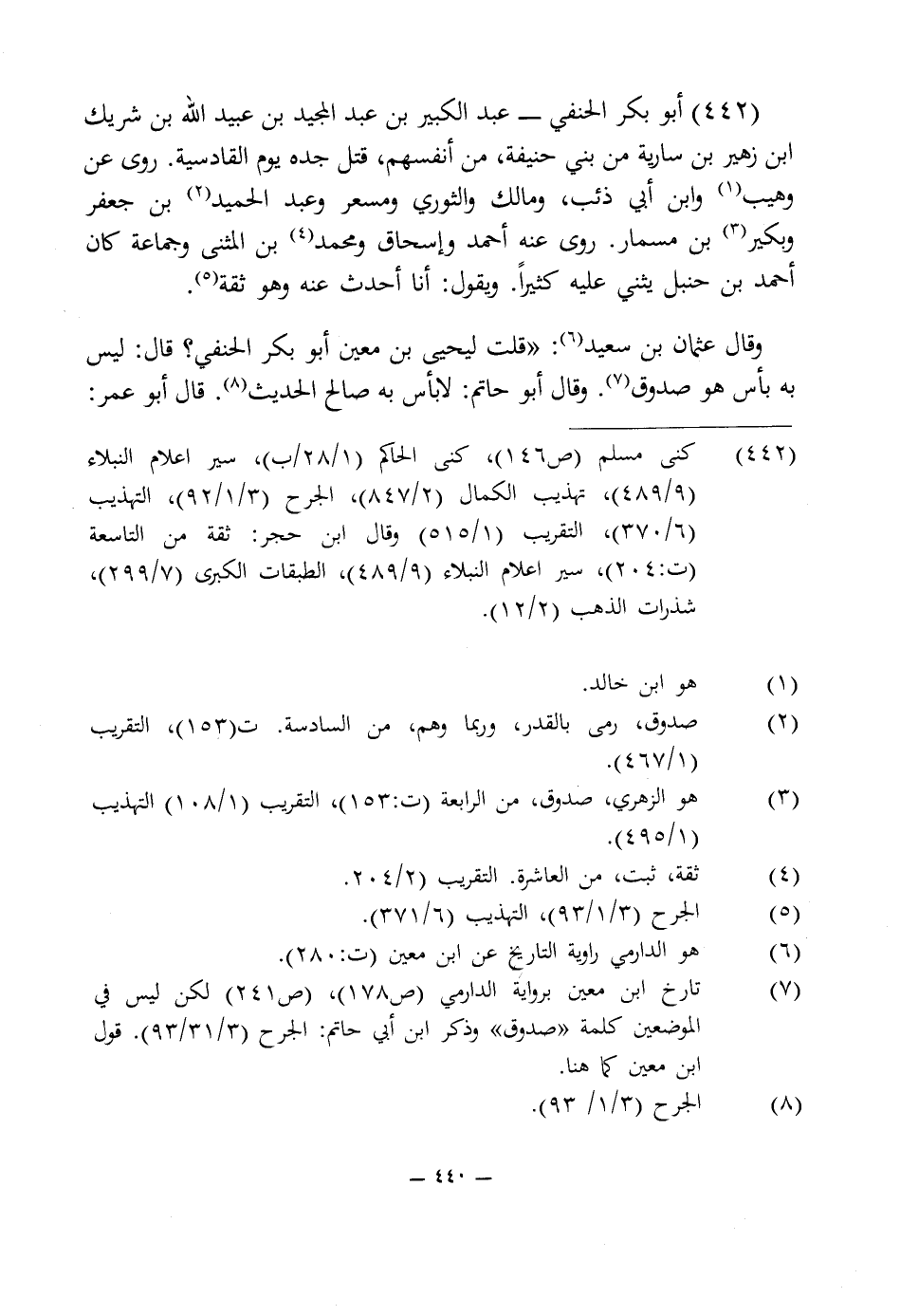 442 - كنى مسلم (ص 146)، كنى الحاكم (1/ 28/ ب)، سير أعلام النبلاء (9/ 489)، تهذيب الكمال (2/ 847)، الجرح (3/ 1/ 92)، التهذيب (6/ 370)، التقريب (1/ 515) وقال ابن حجر: ثقة من التاسعة (ت: 204)، سير أعلام النبلاء (9/ 489)، الطبقات الكبرى (7/ 299)، شذرات الذهب (2/ 12).