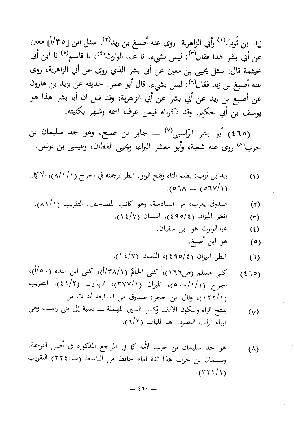465 - أبو بشر الرّاسبى (¬7) - جابر بن صبح، وهو جد سليمان بن حرب (¬8) روى عنه شعبة، وأبو معشر البراء، ويحيى القطان، وعيسى بن يونس.