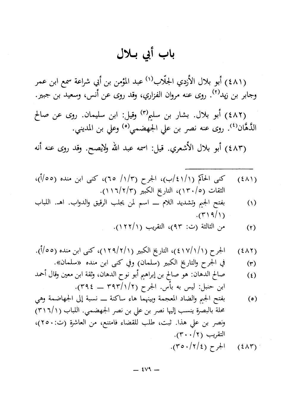 481 - أبو بلال الأزدى الجلّاب (¬1) عبد المؤمن بن أبى شراعة سمع ابن عمر وجابر بن زيد (¬2). روى عنه مروان الفزارى، وقد روى عن أنس، وسعيد بن جبير.