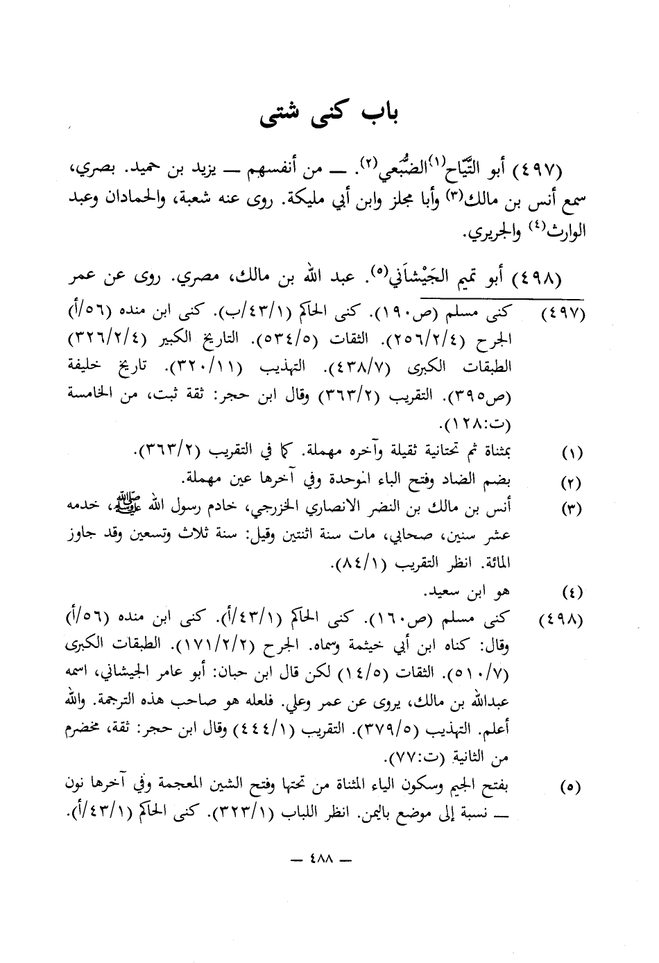 (¬5) بفتح الجيم وسكون الياء المثناة من تحتها وفتح الشين المعجمة وفى آخرها نون - نسبة إلى موضع باليمن. انظر اللباب (1/ 323). كنى الحاكم (1/ 43/ أ).