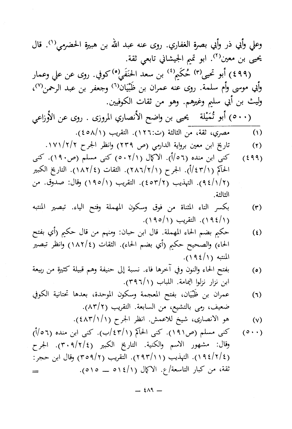 499 - أبو تحيى (¬3) حُكَيم (¬4) بن سعد الحنَفَى (¬5) كوفى. روى عن على وعمار وأبى موسى وأم سلمة. روى عنه عمران بن ظَبْيَان (¬6) وجعفر بن عبد الرحمن (¬7)، وليث بن أبى سليم وغيرهم. وهو من ثقات الكوفيين.