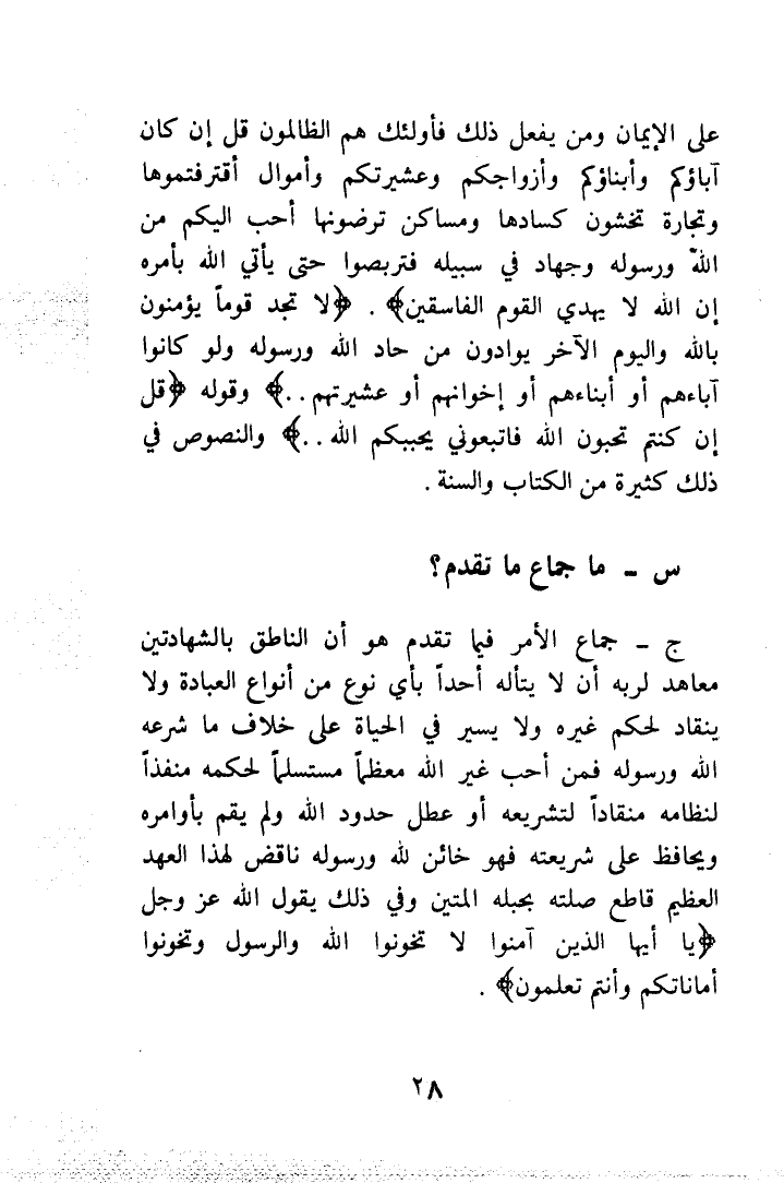 ج) جماع الأمر فيما تقدم هو أن الناطق بالشهادتين معاهد لربه أن لا يتأله أحداً بأي نوع من أنواع العبادة، ولا ينقاد لحكم غيره، ولا يسير في الحياة على خلاف ما شرعه الله ورسوله.