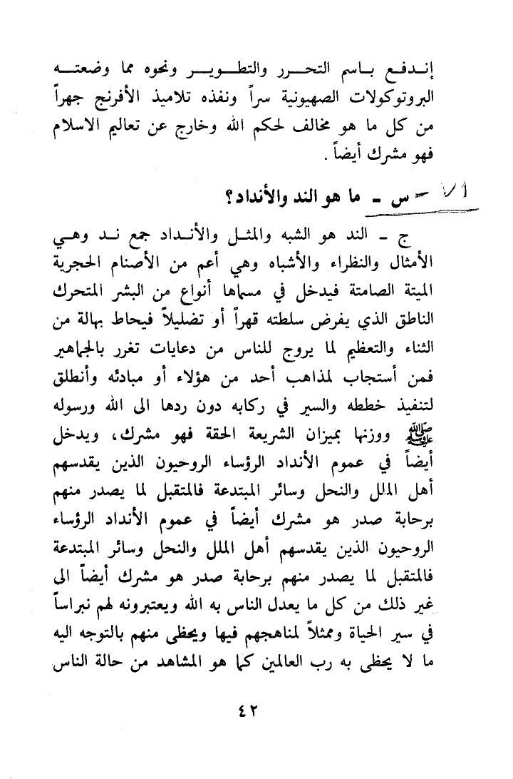 إندفع باسم التحرر والتطوير ونحوه مما وضعته البروتوكولات الصهيونية سراً ونفذه تلاميذ الأفرنج جهراً من كل ما هو مخالف لحكم الله وخارج عن تعاليم الإسلام، فهو مشرك أيضاً.