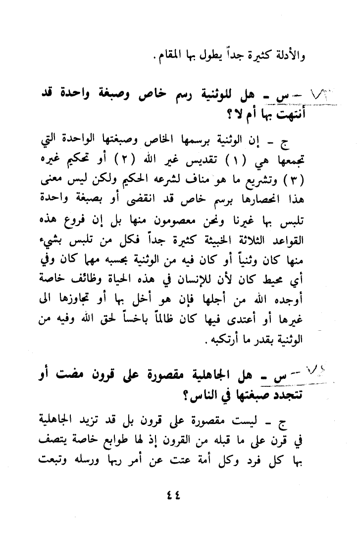 س) هل الجاهلية مقصورة على قرون مضت أو تتجدد صبغتها في الناس؟