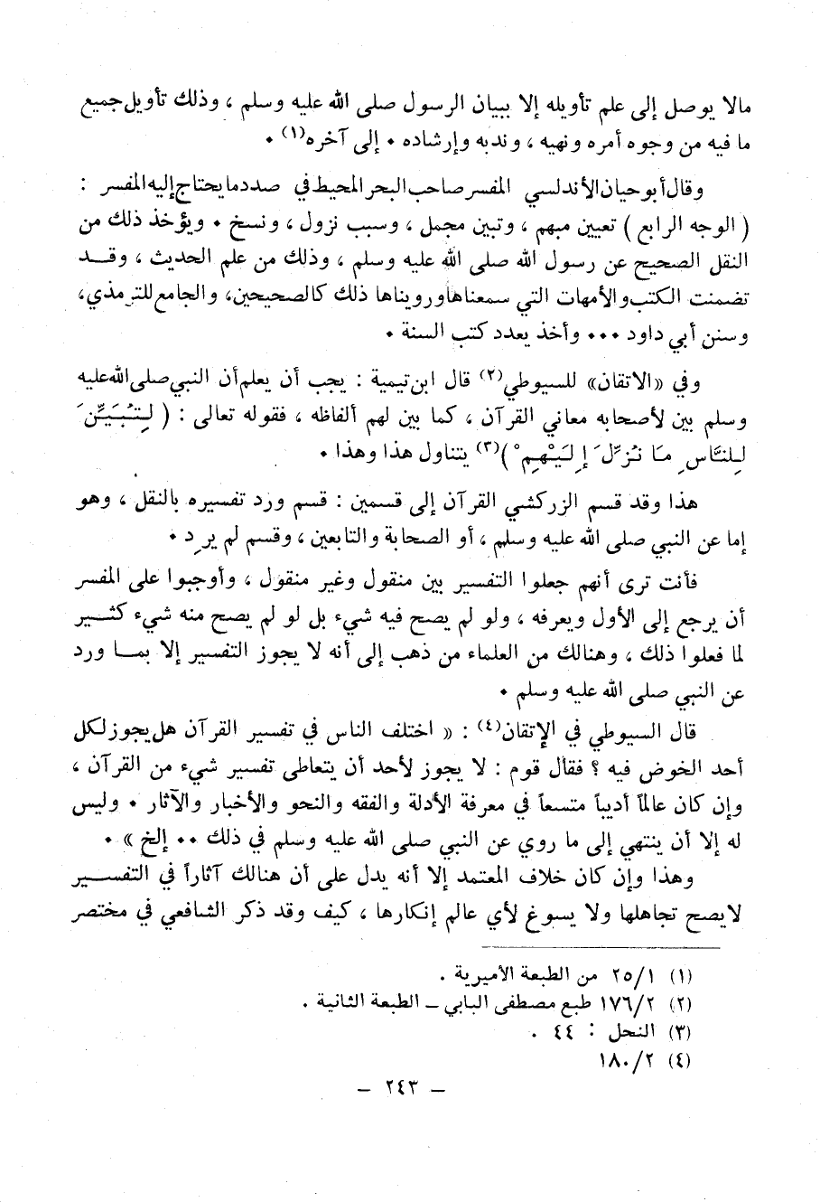 فأنت ترى أنهم جعلوا التفسير بين منقول وغير منقول، وأوجبوا على المُفَسِّرِ أن يرجع إلى الأول ويعرفه، ولو لم يصح فيه شيء بل لو لم يصح منه شيء كثير لما فعلوا ذلك، وهنالك من العلماء من ذهب إلى أنه لا يجوز التفسير إلا بما ورد عَنْ النَّبِيِّ- صَلَّى اللهُ عَلَيْهِ وَسَلَّمَ -.