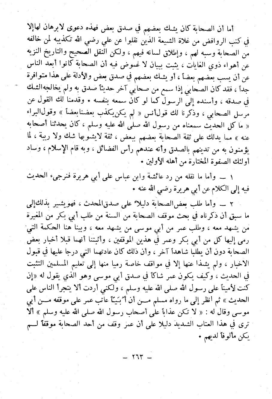 2 - وأما طلب بعض الصحابة دليلاً على صدق الحديث، فهو يشير بذلك إلى ما سبق أن ذكرناه في بحث موقف الصحابة مِنَ السُنَّةِ من طلب أبي بكر من المُغيرة من يشهد معه، وطلب عمر من أبي موسى من يشهد معه، وَبَيَنَّا هنا الحكمة التي رمى إليها كل من أبي بكر وعمر في هذين الموقفين، وأثبتا أنهما قَبِلاَ أخبار بعض الصحابة دُونَ أن يطلبا شاهداً آخر، وأن ذلك كان عادتهما التي درجا عليها في قبول الأخبار، ولم يَشُذَّا عنها إلا في مواقف خاصة رميا منها إلى تعليم المُسْلِمِينَ التثبت في الحديث، وكيف يكون عمر شَاكًّا في صدق أبي موسى وهو الذي يقول له: «[أَمَا إِنِّي لَمْ أتَّهِمْكَ]، وَلَكِنِّي أَرَدْتُ أَنْْ لاَ يَتَجَرَّأَ النَّاسُ عَلَى الْحَدِيثِ عَلَى الْحَدِيث عَنْ رَسُول اللَّه - صَلََّى اللهُ عَلَيْهِ وَسَلَّمَ -» ثم انظر إلى ما رواه " مسلم " من أن أُبَيّاً عاتب عمر على موقفه من أبي موسى وقال له: «لاَ تَكُنْ عَذَابًا عَلَى أَصْحَابِ رَسُولِ اللَّهِ - صَلََّى اللهُ عَلَيْهِ وَسَلَّمَ -» أَلاَ ترى في هذا العتاب الشديد دليلاً على أَنَّ عمر وقف من أحد الصحابة موقفاً لم يكن مألوفاً لديهم.