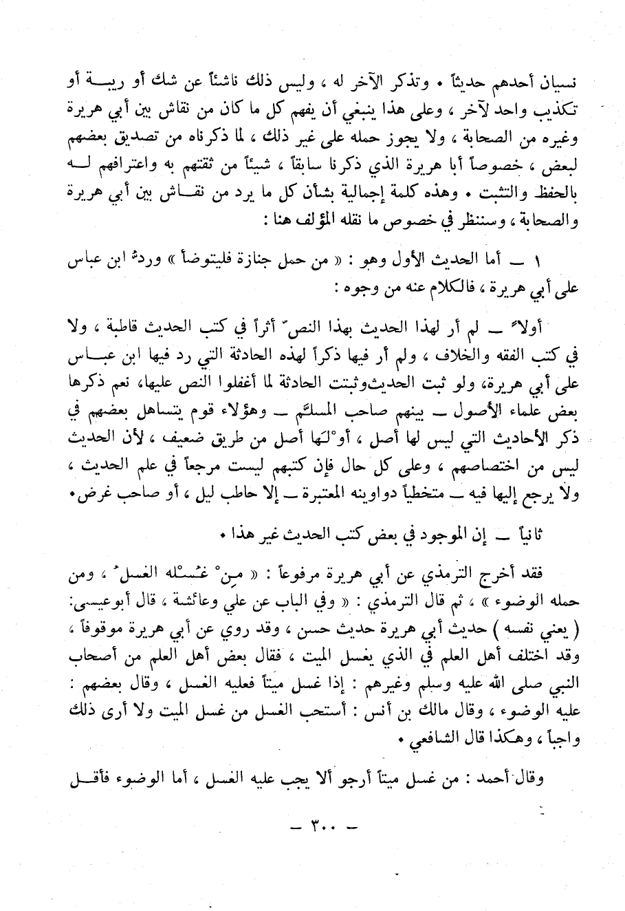 1 - أما الحديث الأول وهو: «مَنْ حَمَلَ جِنَازَةً فَلْيَتَوَضَّأْ» وردُّ ابن عباس على أبي هريرة، فالكلام عنه من وجوه: