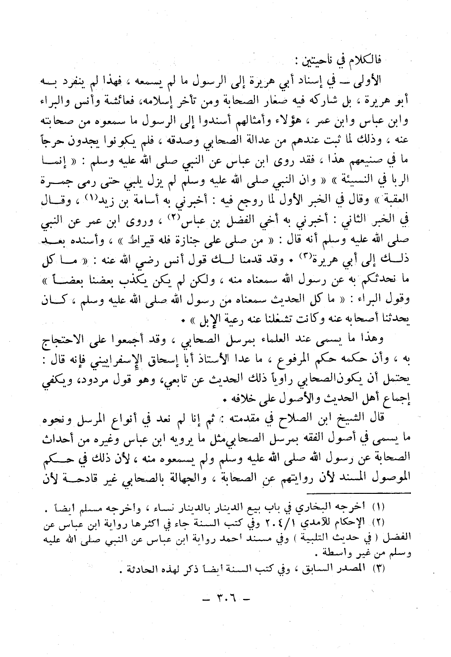 (¬2) " الأحكام " للآمدي: 1/ 204 وفي كتب السُنّةِ جاء أكثرها رواية ابن عباس عن الفضل (في حديث التلبية) وفي " مسند أحمد " رواية ابن عباس عَنْ النَّبِيِّ- صَلَّى اللهُ عَلَيْهِ وَسَلَّمَ - من غير واسطة.
