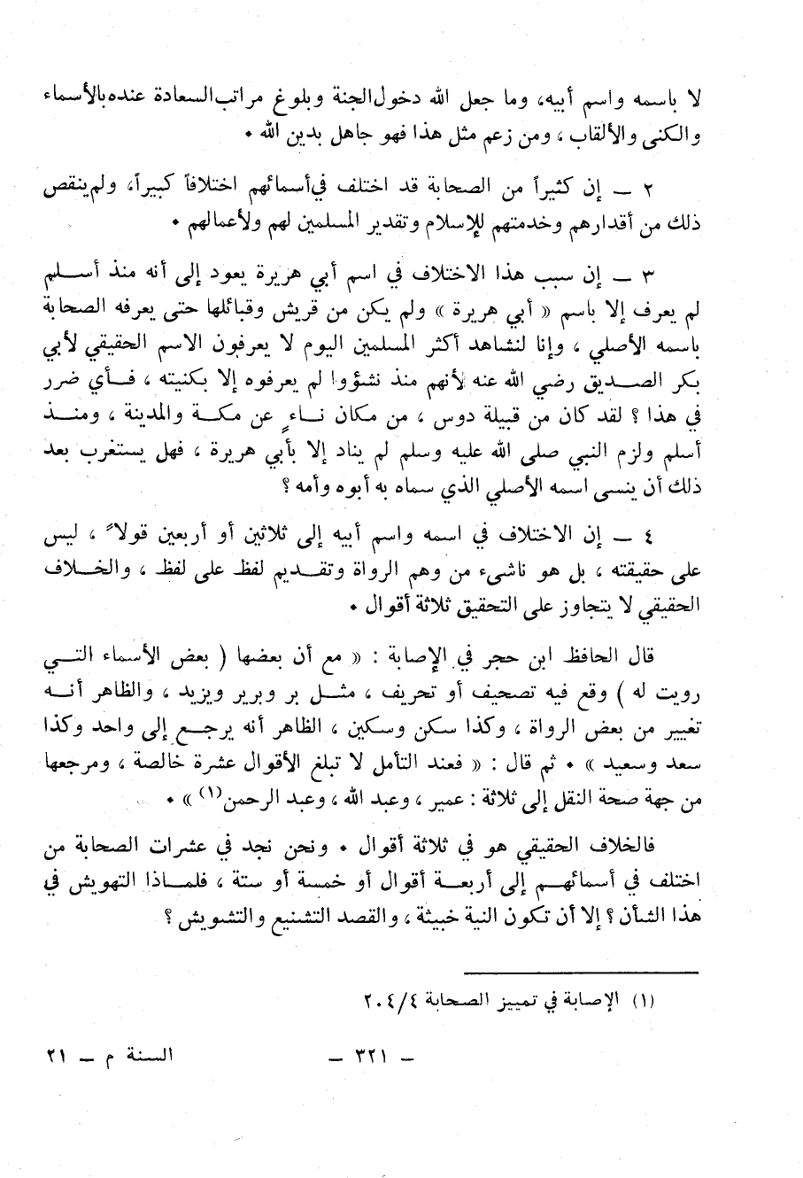 2 - إن كثيراً من الصحابة قد اختلف في أسمائهم اخلافاً كبيراً: ولم ينقص ذلك من أقدارهم وخدمتهم للإسلام وتقدير المُسْلِمِينَ لهم ولأعمالهم.