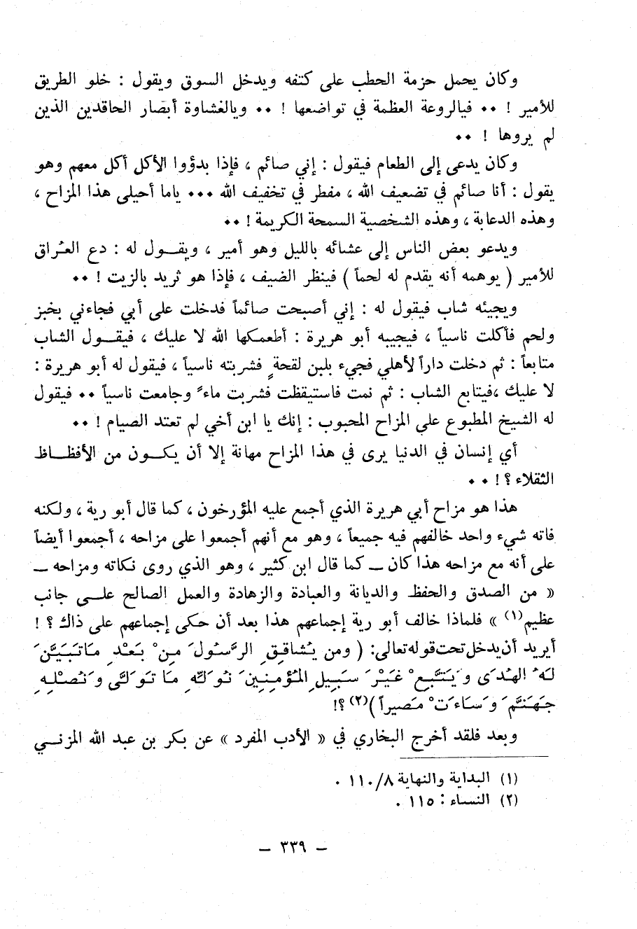 هذا هو مزاح أبي هريرة الذي أجمع عليه المُؤَرِّخُونَ، كما قال أَبُو رَيَّةَ، ولكنه فاته شيء واحد خالفهم فيه جميعاً، وهو مع أنهم أجمعوا على مزاحه، أجمعوا أيضاًً على أنه مع مزاحه هذا كان - كما قال ابن كثير، - وهو الذي روى نكاته ومزاحه - «[وَقَدْ كَانَ أَبُو هُرَيْرَةَ، رَضِيَ اللَّهُ عَنْهُ،] مِنَ الصِّدْقِ وَالْحِفْظِ وَالدِّيَانَةِ وَالْعِبَادَةِ وَالزَّهَادَةِ وَالْعَمَلِ الصَّالِحِ عَلَى جَانِبٍ عَظِيمٍ» (¬1) فلماذا خالف أَبُو رَيَّةَ إجماعهم هذا بعد أن حكى إجماعم على ذاك؟!