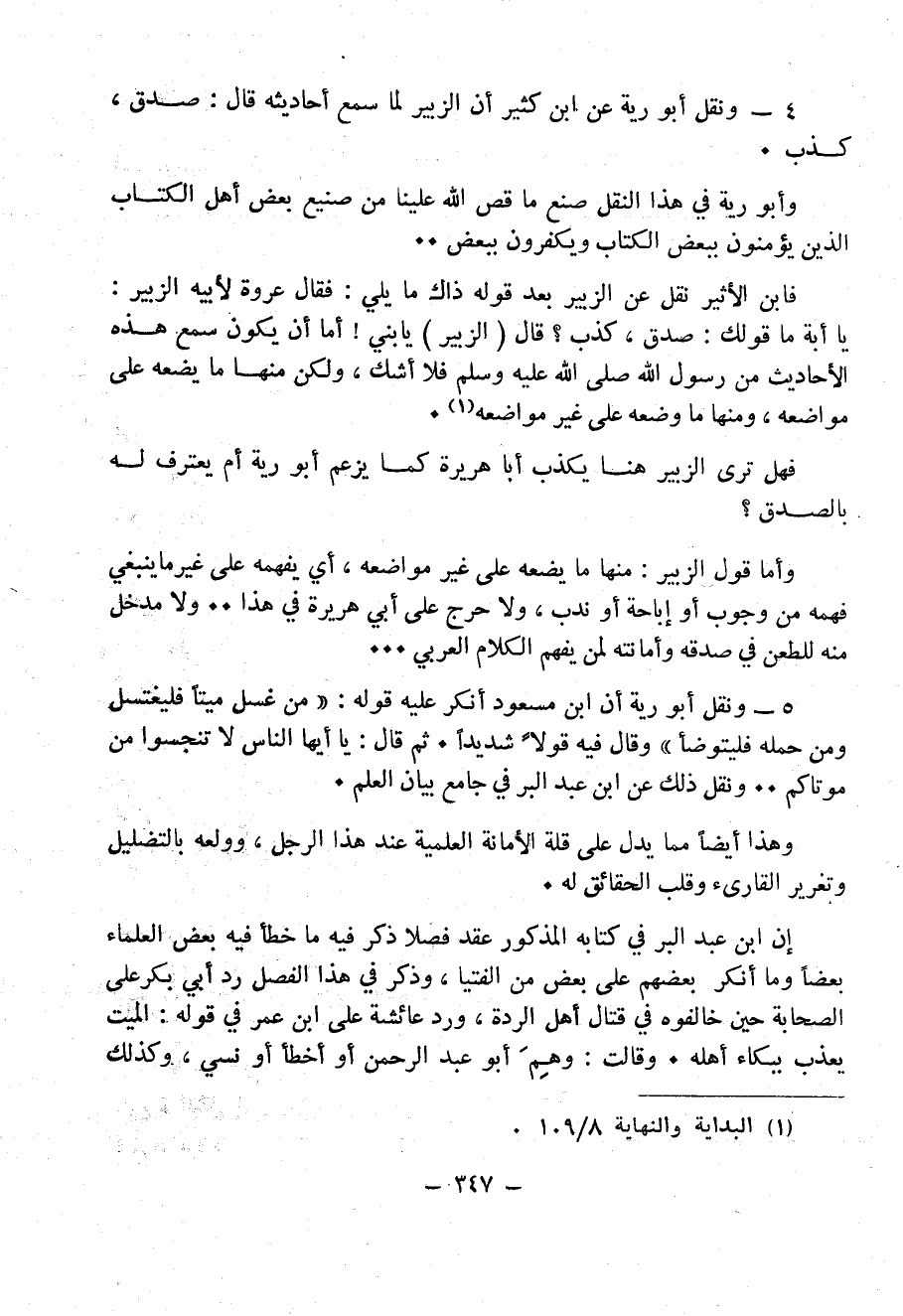 4 - ونقل أَبُو رَيَّةَ عن ابن كثير أن الزبير لما سمع أحاديثه قال: صدق، كذب.