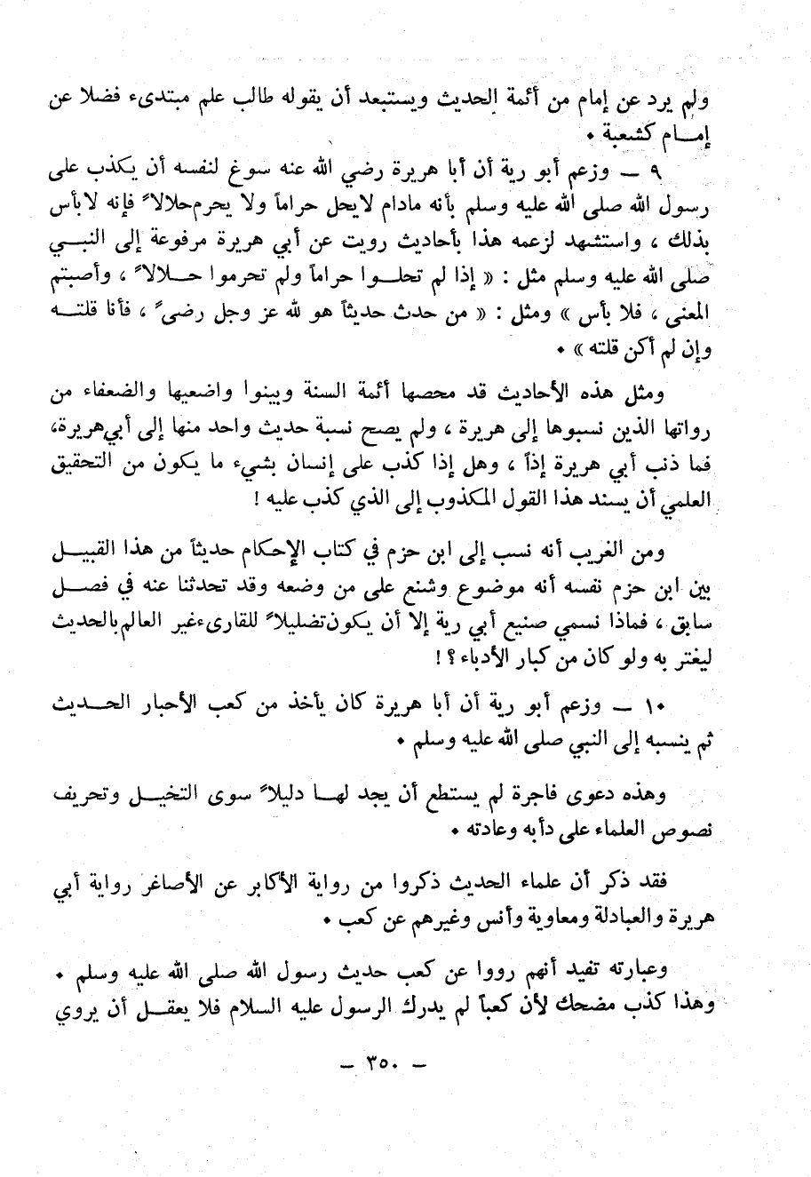 ومثل هذه الأحاديث قد مَحَّصَهَا أئمة السُنّةِ وَبَيَّنُوا وَاضِعِيهَا والضعفاء من رُوَاتِهَا الذين نسبوها إلى أبي هريرة، ولم يصح نسبة حديث واحد منها إلى أبي هريرة، فما ذنب أبي هريرة إِذاً، وهل إذا كُذِبَ على إنسان بشيء ما يكون من التحقيق العلمي أن يسند هذا القول المكذوب إلى الذي كُذِبَ عليه!