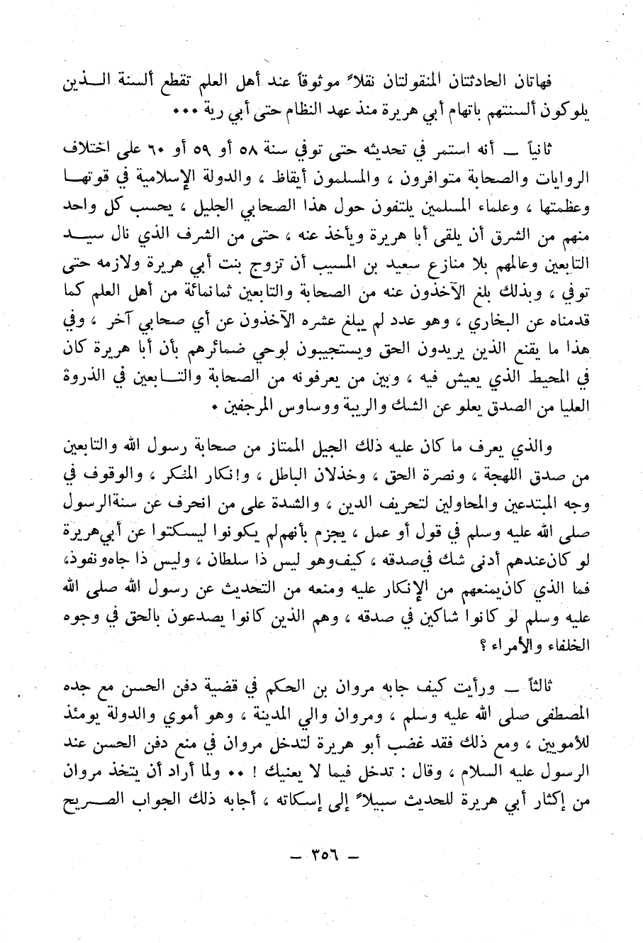 فهاتان الحادثتان المنقولتان نقلاً موثوقاً عند أهل العلم تقطع أَلْسِنَةَ الذين يلوكون ألسنتهم بِاتِّهَامِ أبي هريرة منذ عهد النَظَّامِ حتى أَبِي رَيَّةَ ...