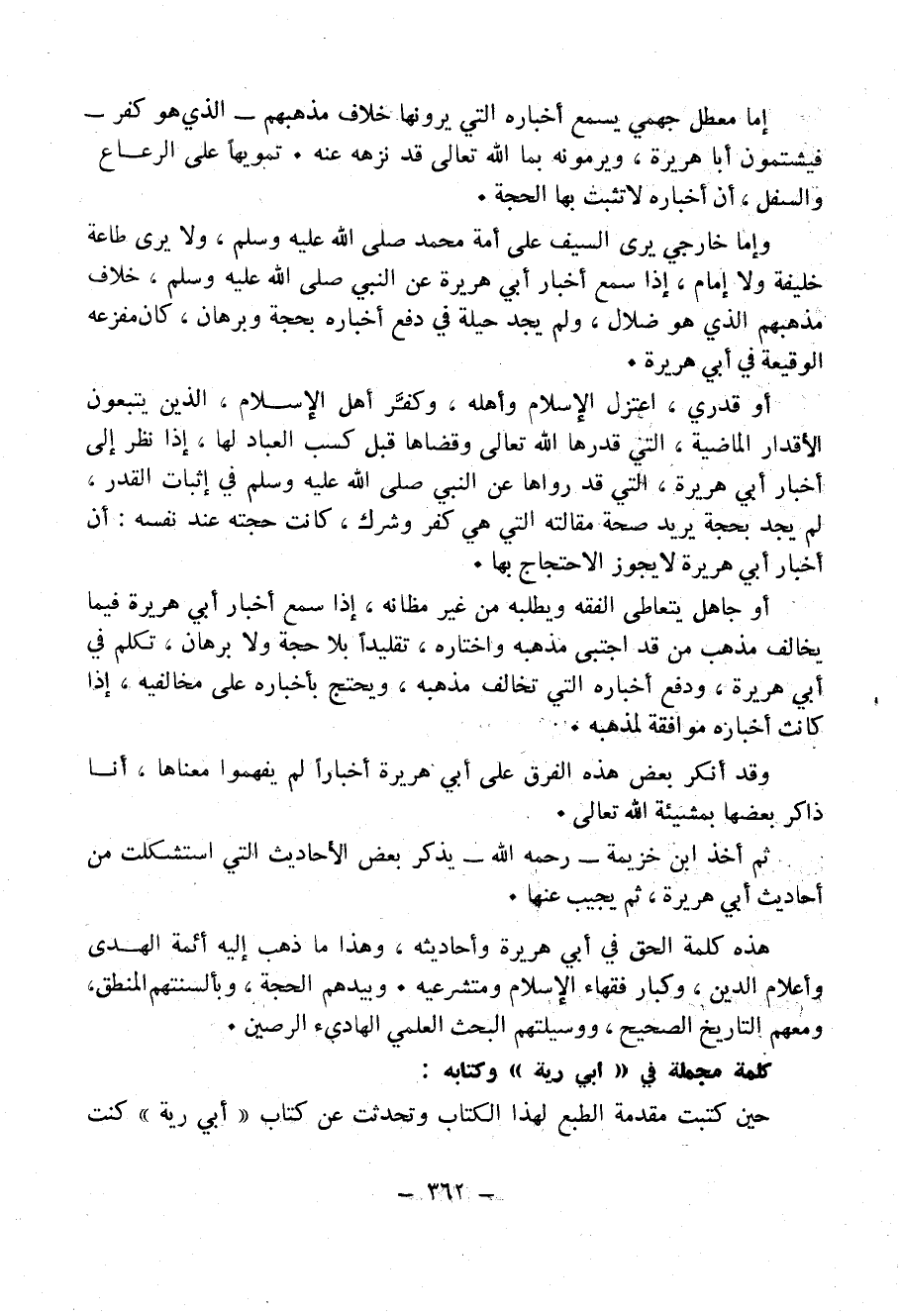 كَلِمَةٌ مُجْمَلَةٌ فِي «أَبِي رَيَّةَ» وَكِتَابِهِ: