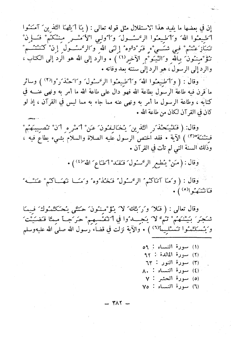 إِنَّ في بعضها ما يفيد هذا الاستقلال مثل قوله تعالى: {يَا أَيُّهَا الَّذِينَ آمَنُوا أَطِيعُوا اللَّهَ وَأَطِيعُوا الرَّسُولَ وَأُولِي الْأَمْرِ مِنْكُمْ فَإِنْ تَنَازَعْتُمْ فِي شَيْءٍ فَرُدُّوهُ إِلَى اللَّهِ وَالرَّسُولِ إِنْ كُنْتُمْ تُؤْمِنُونَ بِاللَّهِ وَالْيَوْمِ الْآخِرِ} (¬1). وَالرَدُّ إلى الله هُوَ الرَدُّ إلى الكتاب، وَالرَدُّ إلى الرسول، هُوَ الرَدُّ إلىَ سُنَّتِهِ بعد وفاته.