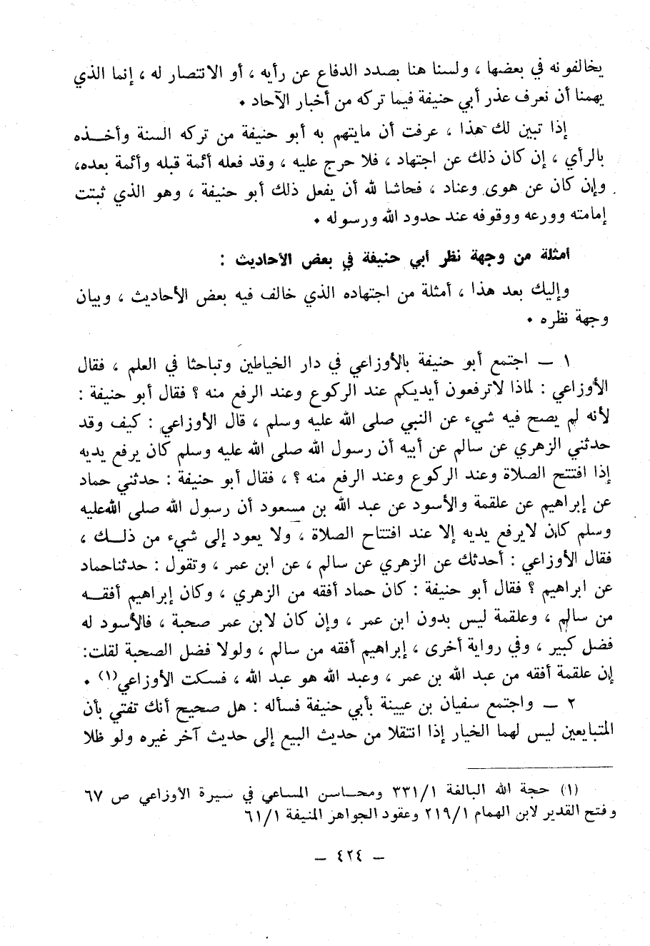 (¬1) " حُجَّةُ اللهِ البَالِغَةُ ": 1/ 331 و" محاسن المساعي في سيرة الأوزاعي ": ص 67، و" فتح القدير " لابن الهُمام: 1/ 219، و" عقود الجواهر المنيفة ": 1/ 61.