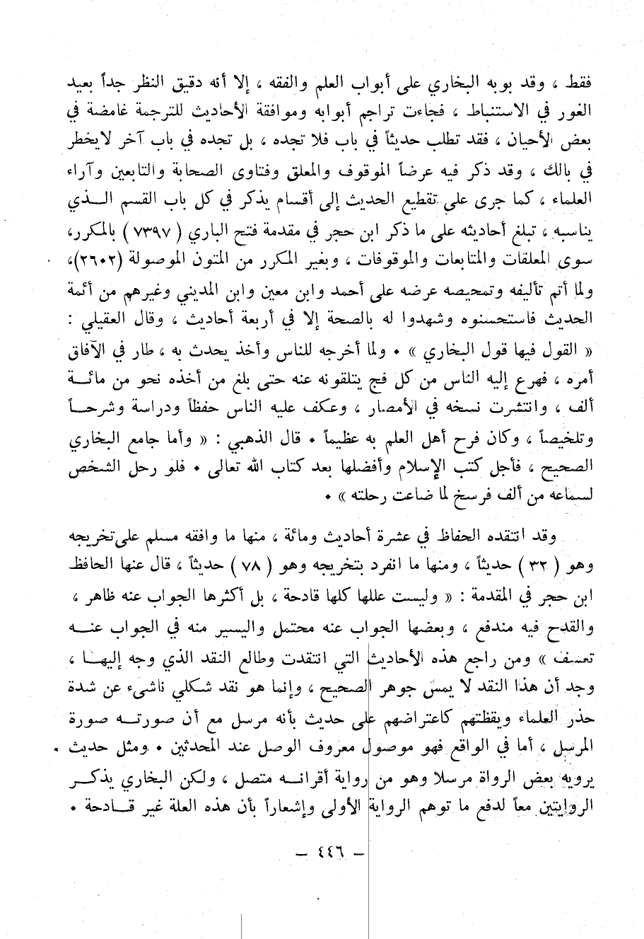 وقد انتقده الحفاظ في عشرة أحاديث ومائة، منها ما وافقه " مسلم " على تخريجه وهو (32) حَدِيثًا، ومنها ما انفرد بتخريجه وهو (78) حَدِيثًا، قال عنها الحافظ ابن حجر في "المقدمة ": «وَلَيْسَتْ عِلَلُهَا كُلُّهَا قَادِحَةٌ، بَلْ أَكْثَرُهَا الجَوَابُ عَنْهُ ظَاهِرٌ، وَالقَدَحُ فِيهِ مُنْدَفِعٌ، وَبَعْضُهَا الجَوَابُ عَنْهُ مُحْتَمَلٌ وَاليَسِيرُ مِنْهُ فِي الجَوَابِ عَنْهُ تَعَسُّفٌ» ومن راجع هذه الأحاديث التي انتقدت وطالع النقد الذي وُجِّهَ إليها، وجد أن هذا النقد لا يمس جوهر الصحيح، وإنما هو نقد شكلي ناشىء عن شدة حَذَرِ العلماء ويقظتهم كاعتراضهم على حديث بأنه مرسل مع أن صورته صورة المرسل، أما في الواقع فهو موصول معروف الوصل عند المُحَدِّثِينَ. ومثل حديث يرويه بعض الرُوَاةِ مُرْسَلاً وهو من رواية أقرانه متصل، ولكن البخاري يذكر الروايتين معاً لدفع مَا تُوهِمُ الرواية الأولى وإشعاراً بأن هذه العلة غير قادحة.