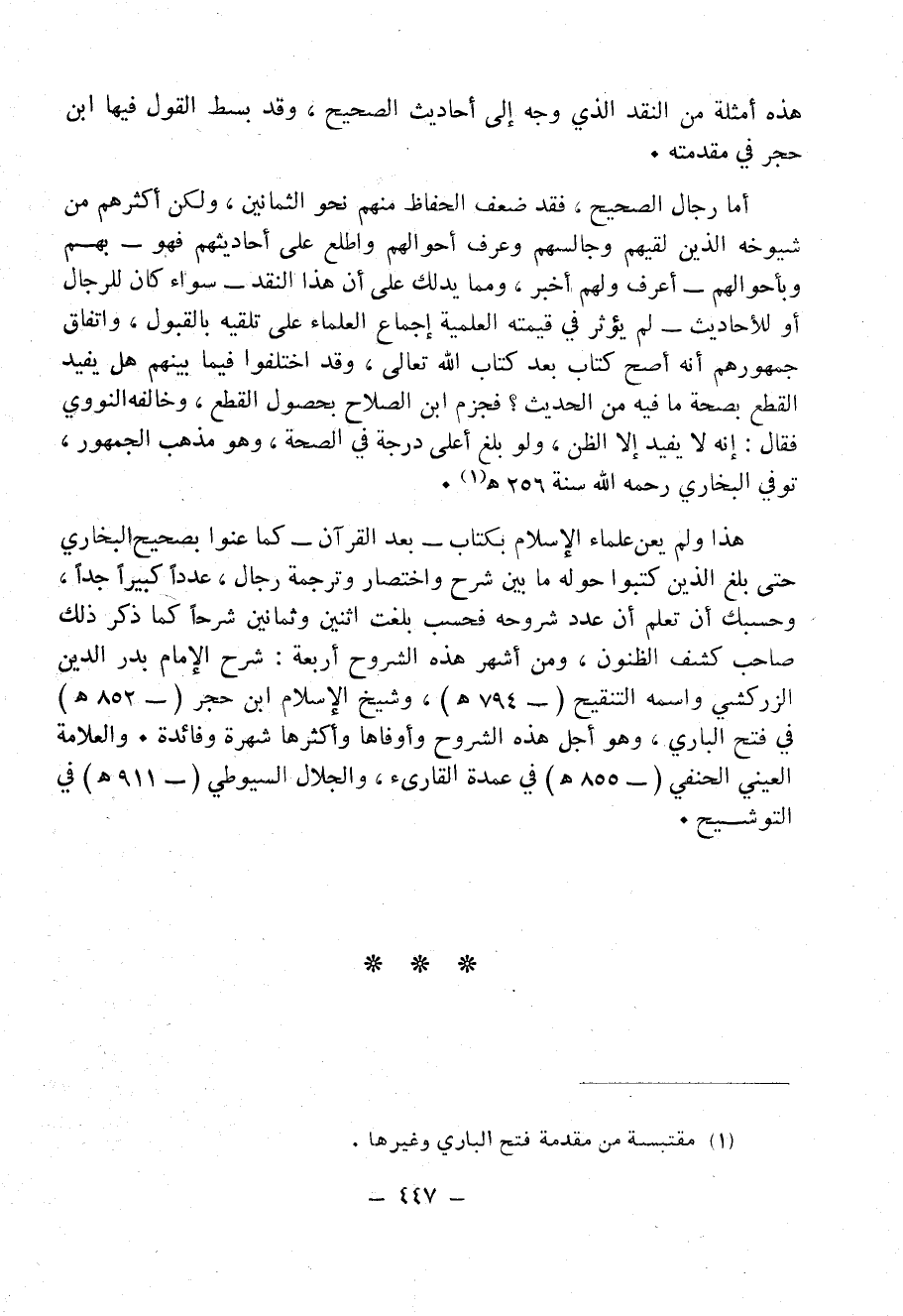 (*) [انظر: " إتحاف القارئ بمعرفة جهود وأعمال العُلماء على صحيح البخاري "، تأليف عصام عرار الحسيني، الطبعة الأولى: 1407 هـ - 1987 م، اليمامة للطباعة والنشر والتوزيع - دمشق].