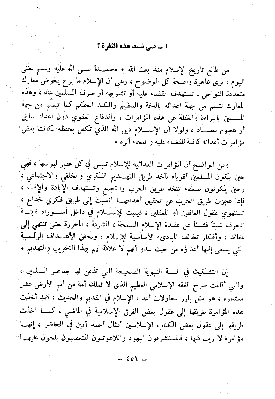 1 - مَتَى نَسُدُّ هَذِهِ الثَّغْرَةَ؟: