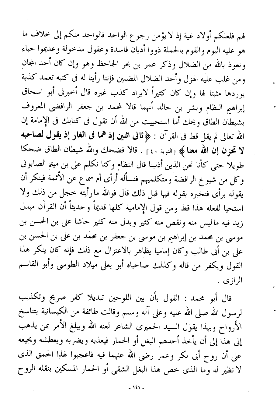 إلى أن قال رحمه الله: وذكر أصحاب التواريخ أن الذين وضعوا أساس دين الباطنية كانوا من أولاد المجوس وكانوا مائلين إلى دين أسلافهم، ولم يجسروا على إظهاره خوفًا من سيوف المسلمين، فوضع الأغمار منهم أساسًا من قبلها، منهم صار في الباطن إلى تفصيل أديان المجوس، وتأولوا آيات