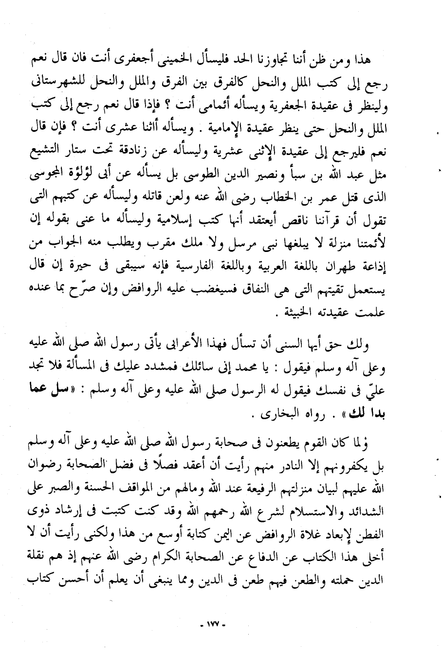 قال أبومحمد: فإن ذكر في شرق الأرض وغربها وشمالها وجنوبها وفي ألف موضع في دقيقة واحدة كيف يصنع ولقد لقينا من يذهب إلى هذا خلقًا وكلمناهم منهم المعروف بابن شق الليل المحدث بطلبيرة وهو مع ذلك من أهل العناية وسعة الرواية، ومنهم محمد بن عبد الله الكاتب وأخبرني أنه جالس الخضر وكلمه مرارًا وغيره كثير، هذا مع سماعهم قول الله تعالى: {ولكن رسول الله وخاتم النّبيّين (¬1)}، وقول رسول الله -صلى الله عليه وعلى آله وسلم-: ((لا نبيّ بعدي)) فكيف يستجيز مسلم أن يثبت بعده عليه السلام نبيًّا في الأرض حاشا ما استثناه رسول الله -صلى الله عليه وعلى آله وسلم- في الآثار المسندة الثابتة في نزول عيسى بن مريم عليه السلام في آخر الزمان.