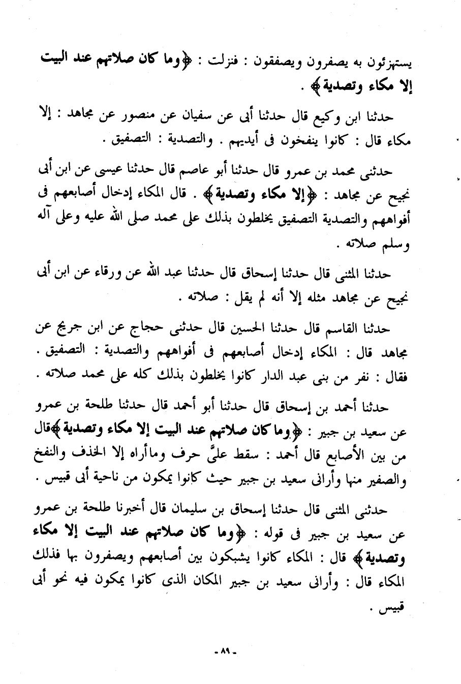 وقال تعالى: {ولكلّ أمّة جعلنا منسكًا ليذكروا اسم الله على ما رزقهم من بهيمة الأنعام فإلهكم إله واحد فله أسلموا وبشّر المخبتين? الّذين إذا ذكر الله وجلت قلوبهم والصّابرين على ما أصابهم والمقيمي الصّلاة وممّا رزقناهم ينفقون? والبدن جعلناها لكم من شعائر الله لكم فيها خير فاذكروا اسم الله عليها صوافّ فإذا وجبت جنوبها فكلوا منها وأطعموا القانع والمعترّ كذلك سخّرناها لكم لعلّكم تشكرون? لن ينال الله لحومها ولا دماؤها ولكن يناله التّقوى منكم كذلك سخّرها لكم لتكبّروا الله على ما هداكم وبشّر المحسنين (¬1)}.