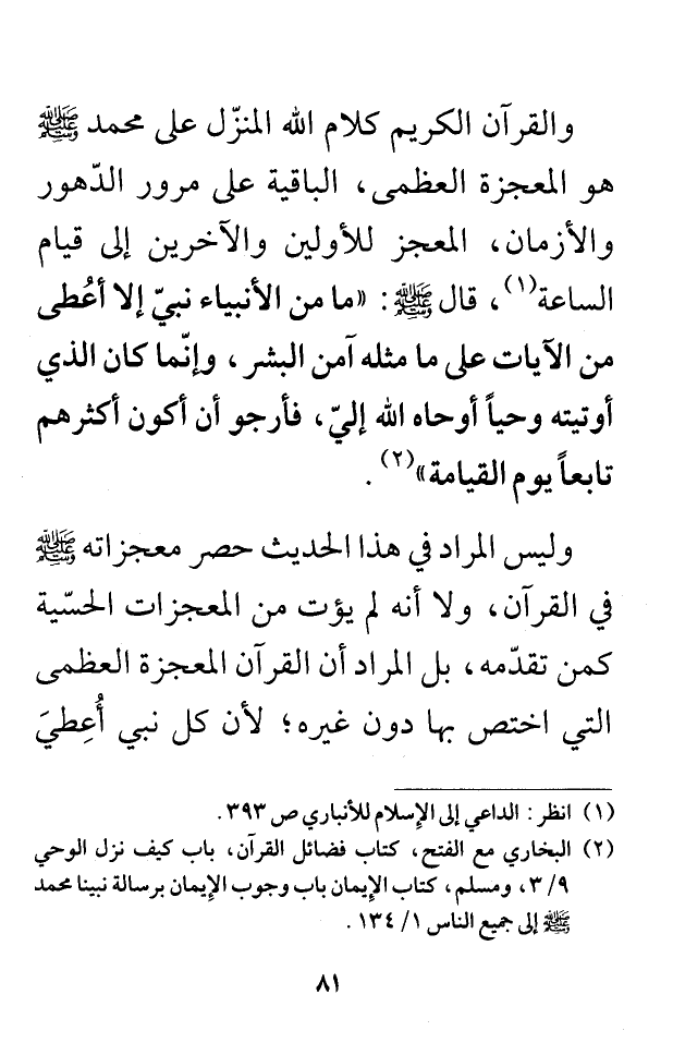 * وأما المنكر لرسالة نبينا محمد - صلى الله عليه وسلم - مطلقاً، فقد قام البرهان القاطع على صدق صاحب الرسالة - صلى الله عليه وسلم -، ولا تزال معجزات القرآن تتحدى الإنس والجنّ، فإمَّا أن يأتي بما يُناقض المعجزة القائمة وإلا لزمه الاعتراف بمدلولها، فإن اعترف بالرسالة لزمه التّصديق بكل ما أخبر به الرسول - صلى الله عليه وسلم -، وإن ذهب يُكابر ويُعاند ليأتي بقرآن مثل ما جاء به محمد - صلى الله عليه وسلم - وقع في العجز وفضح نفسه لا محالة؛ لأن أصحاب الفصاحة والبلاغة قد عجزوا عن ذلك، ولا شك أن غيرهم أعجز عن هذا؛ لأن القرآن