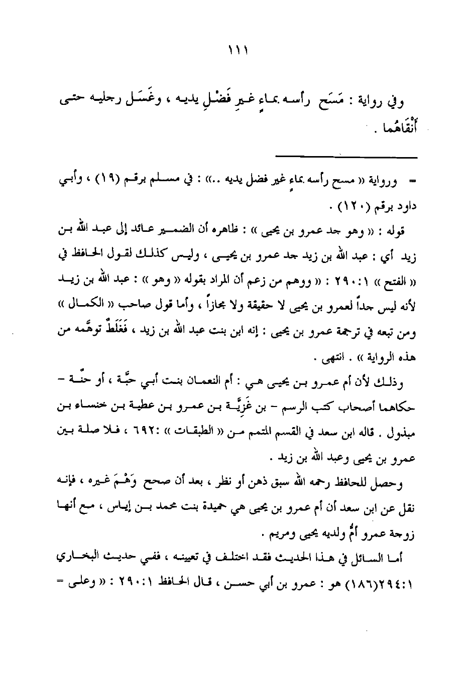 قوله: "وهو جد عمرو بن يحيى": ظاهره أن الضمير عائد إلى عبد الله بن زيد أى: عبد الله بن زيد جد عمرو بن يحيى، وليس كذلك لقول الحافظ في "الفتح" 1: 290: "ووهم من زعم أن المراد بقوله "وهو": عبد الله بن زيد لأنه ليس جدًا لعمرو بن يحيى لا حقيقة ولا مجازًا، وأما قول صاحب "الكمال" ومن تبعه في ترجمة عمرو بن يحيى: إنه ابن بنت عبد الله بن زيد، فَغَلَطٌ توهَّمه من هذه الرواية". انتهى.
