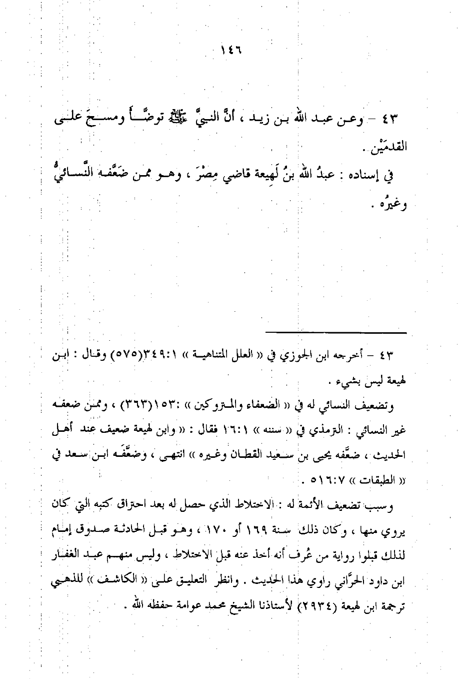 43 - أخرجه ابن الجوزي في "العلل المتناهية" 349: 1 (575) وقال: ابن لهيعة ليس شيء.