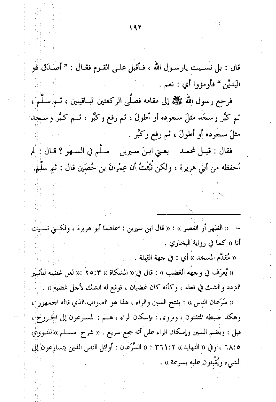 فقال: قيل لمحمد -يعني ابنَ سيرين- سلَّم في السهو؟ قال: لم أحفظه من أبي هريرة، ولكن نُبّئْتُ أن عِمْرانَ بن حُصَين قال: ثم سلَّم.