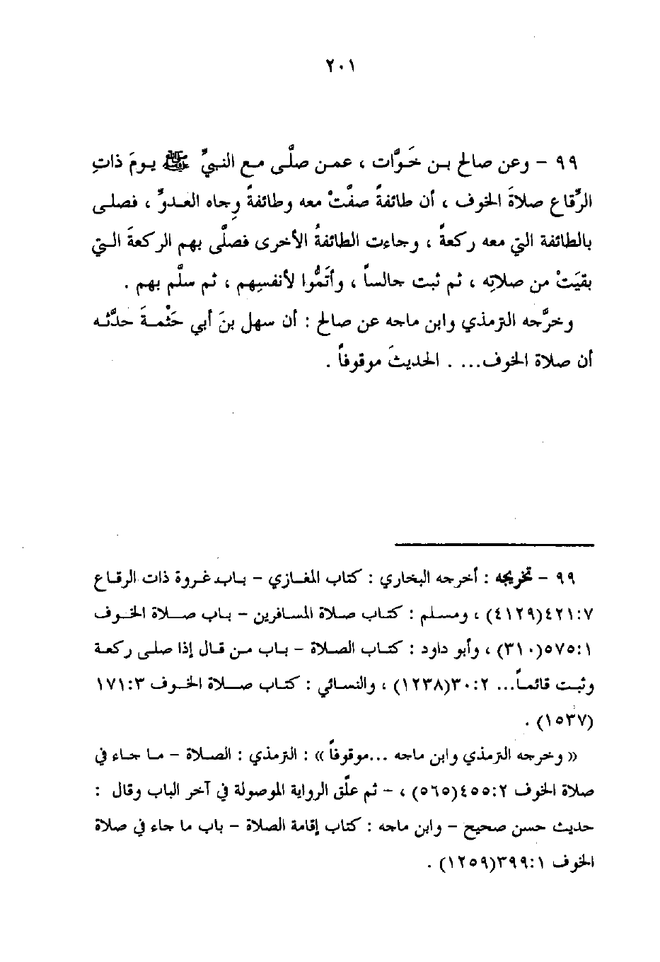99 - تخريجه: أخرجه البخاري: كتاب المغازي - باب غزوة ذات الرقاع 7: 421 (4129)، ومسلم: كتاب صلاة المسافرين - باب صلاة الخوف 1: 575 (310)، وأبو داود: كتاب الصلاة - باب من قال إذا صلى ركعة وثبت قائمًا ... 2: 30 (1238)، والنسائي: كتاب صلاة الخوف 3: 171 (1537).