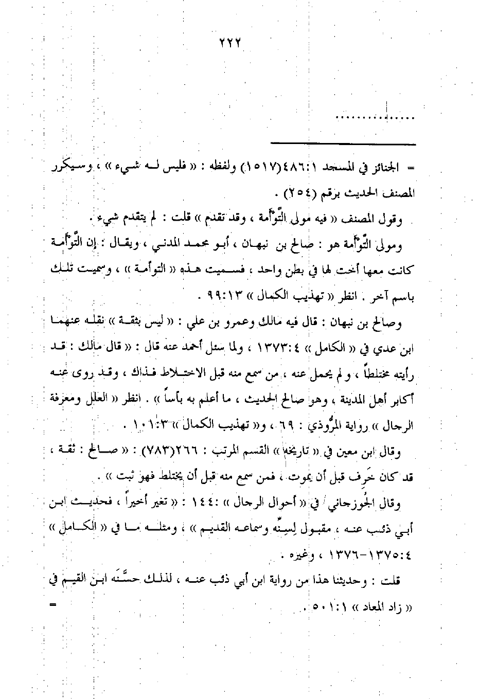 وصالح بن نبهان: قال فيه مالك وعمرو بن علي: "ليس بثقة" نقله عنهما ابن عدي في "الكامل" 1373: 4، ولما سئل أحمد عنه قال: "قال مالك: قد رأيته مختلطًا، ولم يحمل عنه، من سمع منه قبل الاختلاط فذاك، وقد روى عنه أكابر أهل المدينة، وهو صالح الحديث، ما أعلم به بأسًا". انظر "العلل ومعرفة الرجال" رواية المرُّوذي: 69، و"تهذيب الكمال" 3: 101.