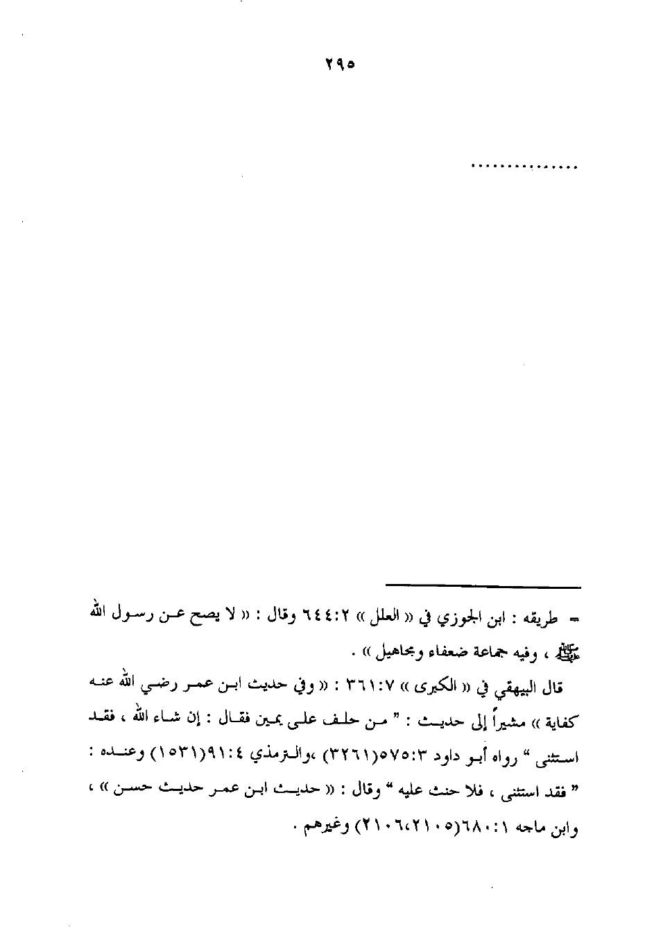 "فقد استثنى، فلا حنث عليه" وقال: "حديث ابن عمر حديث حسن"، وابن ماجه 1: 680 (2105، 2106) وغيرهم.
