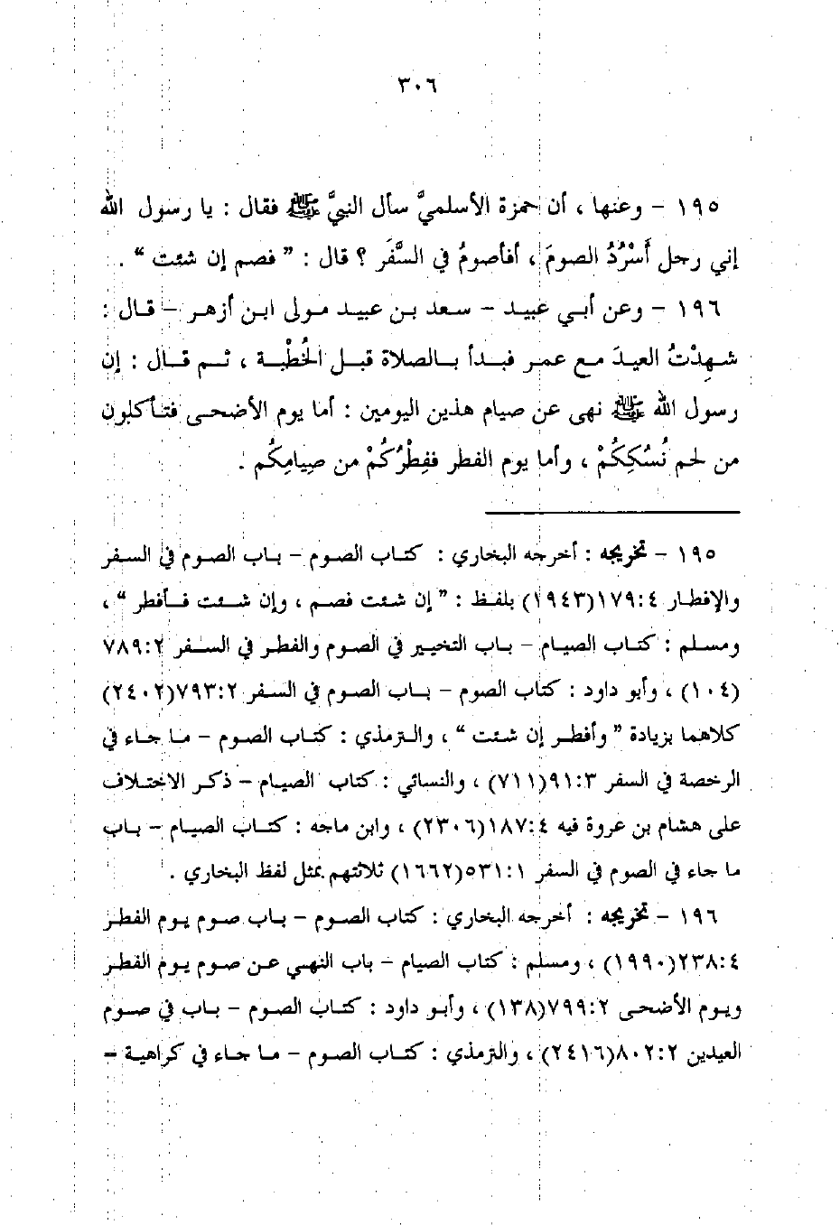 196 - تخريجه: أخرجه البخاري: كتاب الصوم - باب صوم يوم الفطر 4: 238 (1990)، ومسلم: كتاب الصيام - باب النهي عن صوم يوم الفطر ويوم الأضحى 2: 799 (138)، وأبو داود: كتاب الصوم - باب في صوم العيدين 2: 802 (2416)، والترمذي: كتاب الصوم - ما جاء في كراهية =