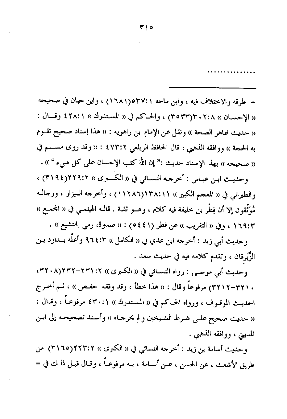 = طرقه والاختلاف فيه، وابن ماجه 1: 537 (1681)، وابن حبان في صحيحه "الإحسان" 8: 302 (3533)، والحاكم في "المستدرك" 1: 428 وقال: "حديث ظاهر الصحة" ونقل عن الإمام ابن راهويه: "هذا إسناد صحيح تقوم به الحجة" ووافقه الذهبي، قال الحاقظ الزيلعي 473: 2: "وقد روى مسلم في "صحيحه" بهذا الإسناد حديث: "إن الله كتب الإحسان على كل شئ".