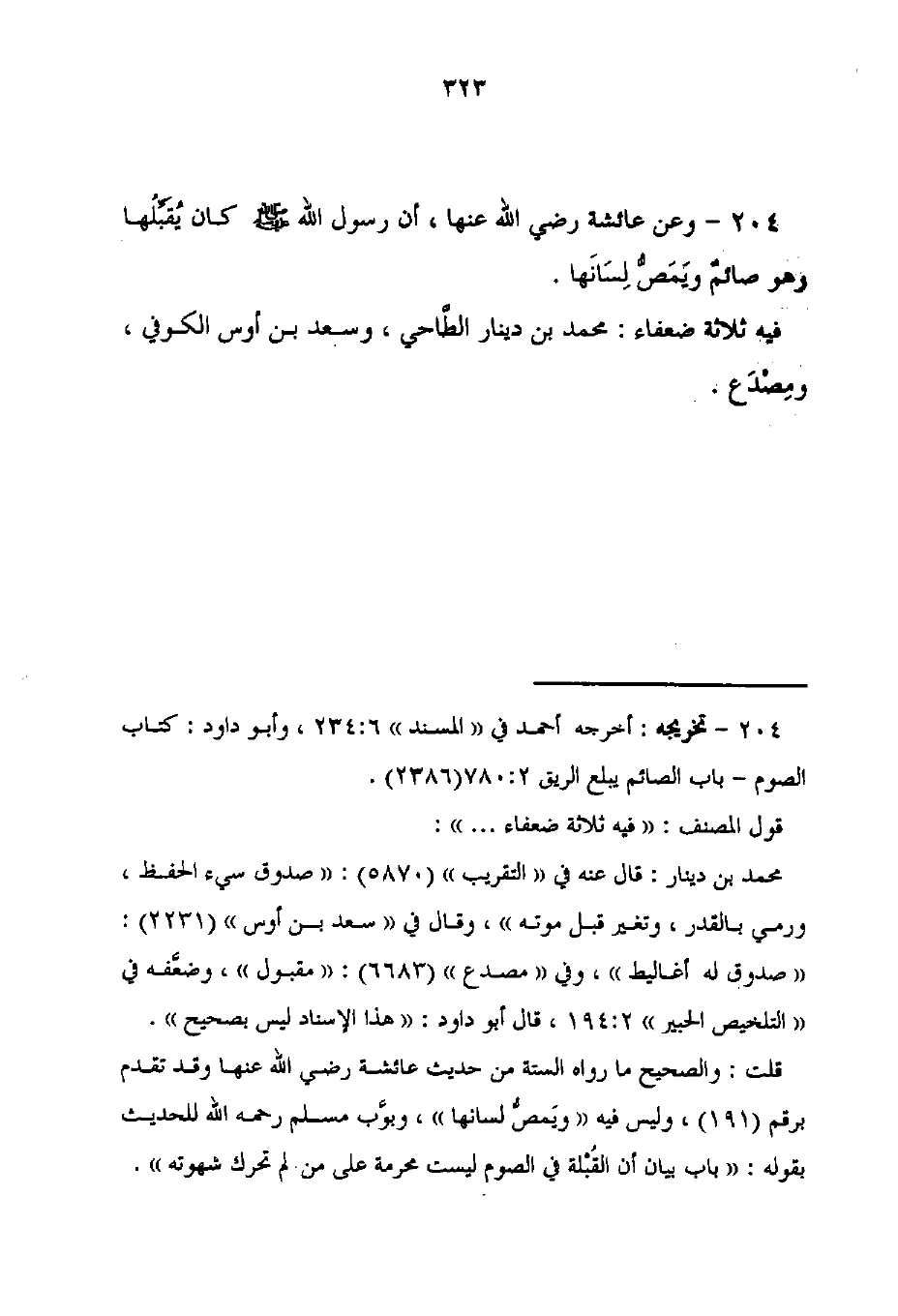 204 - تخريجه: أخرجه أحمد في "المسند" 6: 234، وأبو داود: كتاب الصوم - باب الصائم يبلع الريق 2: 780 (2386).