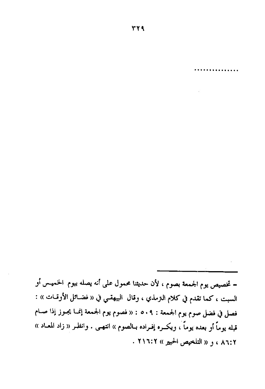 = تخصيص يوم الجمعة بصوم، لأن حديثنا محمول على أنه يصله بيوم الخميس أو السبت، كما تقدم في كلام الترمذي، وقال البيهقي في "فضائل الأوقات": فصل في فضل صوم يوم الجمعة: 509: "فصوم يوم الجمعة إنما يجوز إذا صام قبله يومًا أو بعده يومًا، ويكره إفراده بالصوم" انتهى. وانظر "زاد المعاد" 2: 86، و"التلخيص الحبير" 2: 216.
