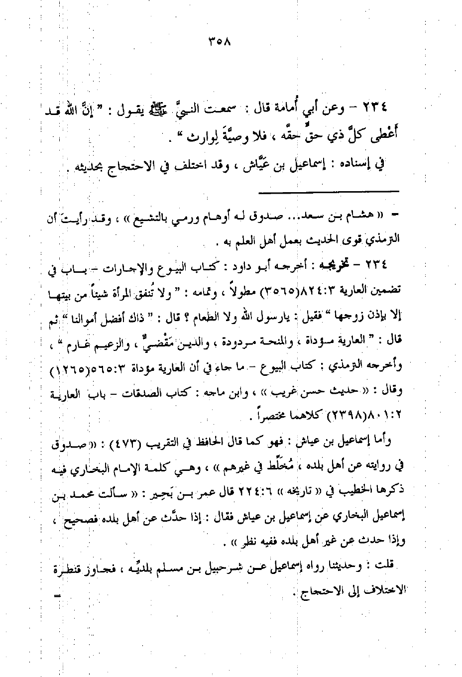 234 - وعن أبى أُمامة قال: سمعت النبي - صلى الله عليه وسلم - يقول: "إن الله قد أعطى كل ذى حقٍّ حقه، فلا وصيَّةَ لِوارث".