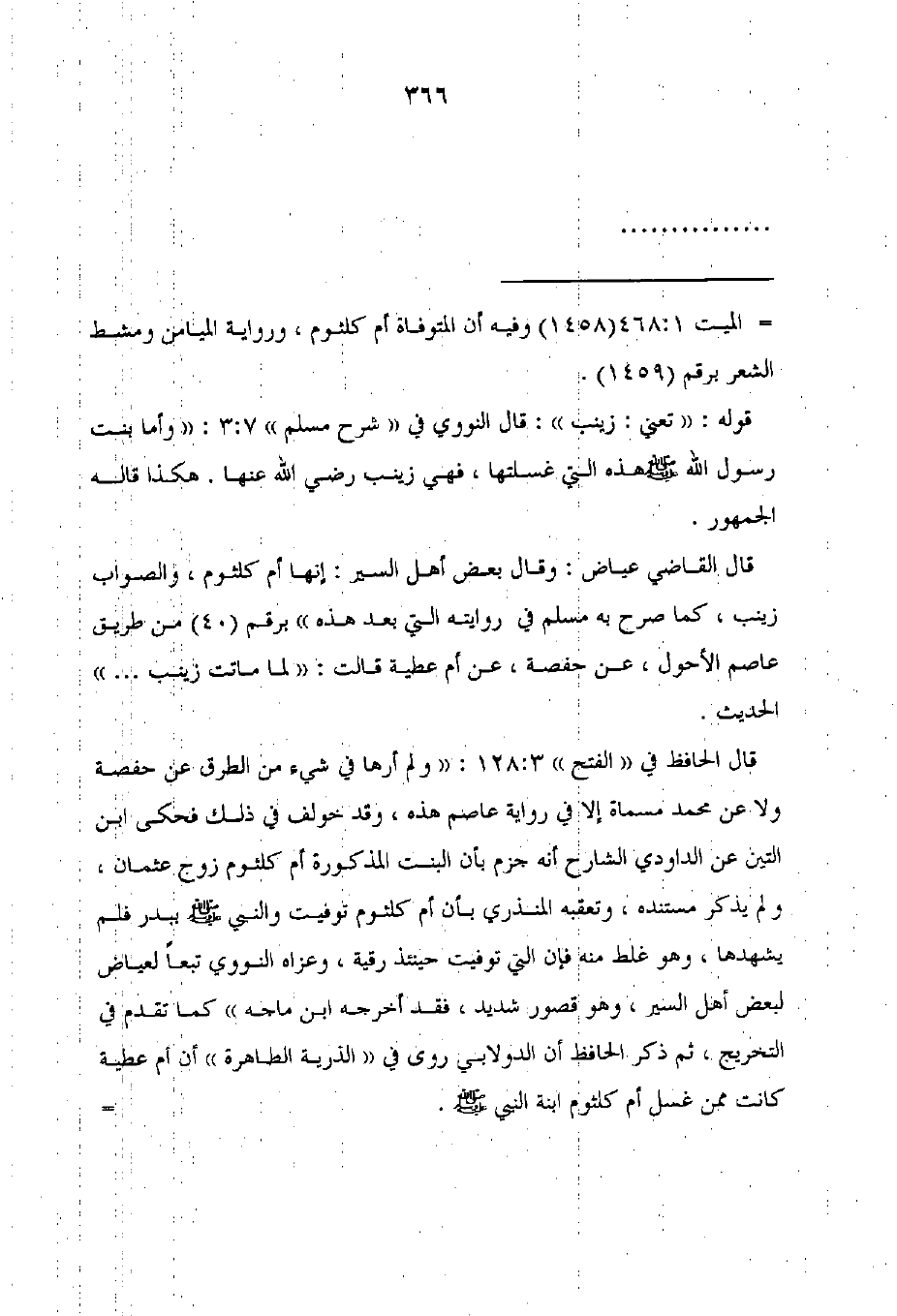قال القاضي عياض: وقال بعض أهل السير: إنها أم كلثوم، والصواب زينب، كما صرح به مسلم في روايته التي بعد هذه" برقم (40) من طريق عاصم الأحول، عن حفصة، عن أم عطية قالت: "لما ماتت زينب. . . ." الحديث.