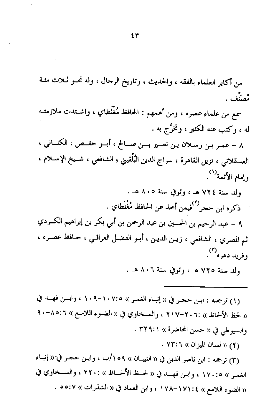 9 - عبد الرحيم بن الحسين بن عبد الرحمن بن أبى بكر بن إبراهيم الكردى ثم المصرى، الشافعى، زين الدين، أبو الفضل العراقي، حافظ عصره، وفريد دهره (¬3).