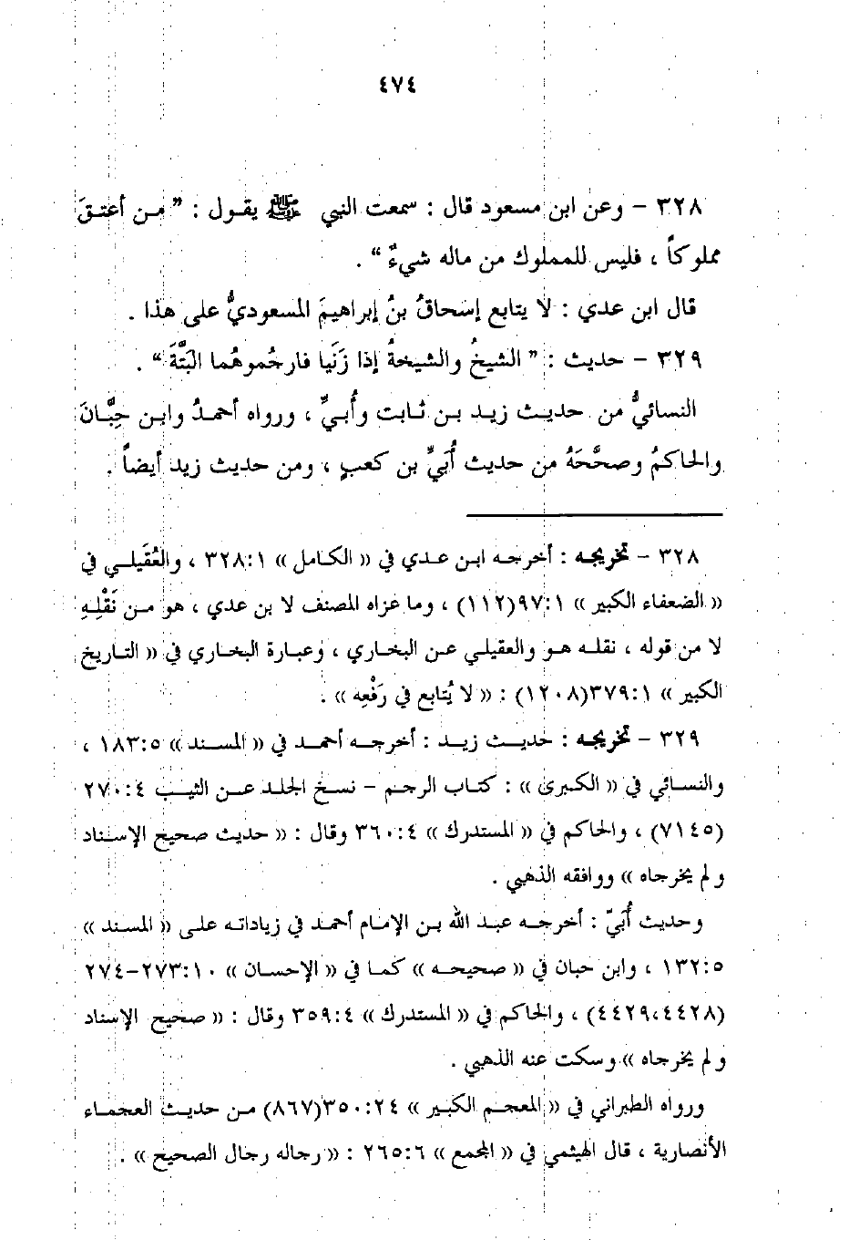 329 - تخريجه: حديث زيد: أخرجه أحمد في "المسند" 183: 5، والنسائي في "الكبرى": كتاب الرجم - نسخ الجلد عن الثيب 4: 270 (7145)، والحاكم في "المستدرك" 4: 360 وقال: "حديث صحيح الإسناد ولم يخرجاه" ووافقه الذهبي.