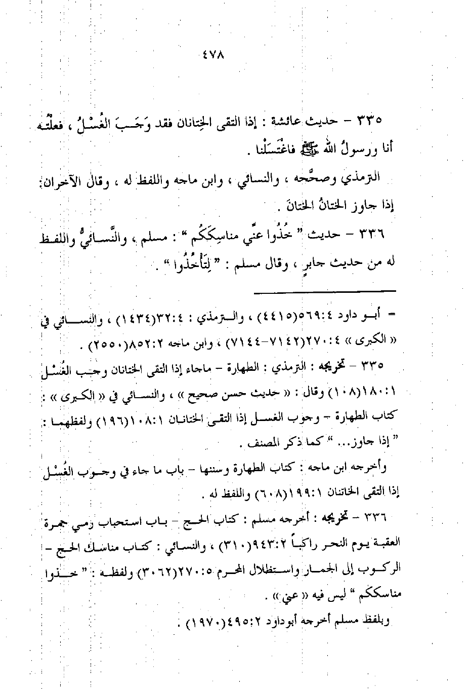 336 - تخريجه: أخرجه مسلم: كتاب الحج - باب استحباب رمي جمرة العقبة يوم النحر راكبًا 943: 2 (310)، والنسائي: كتاب مناسك الحج - الركوب إلى الجمار واستظلال المحرم 5: 270 (3062) ولفظه: "خذوا مناسككم" ليس فيه "عني".
