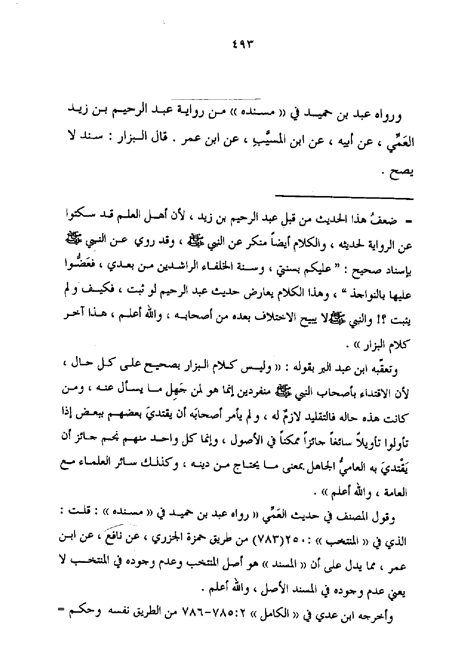 ورواه عبد بن حميد في "مسنده" من رواية عبد الرحيم بن زيد العَمِّي، عن أبيه، عن ابن المسيَّبِ، عن ابن عمر. قال البزار: سند لا يصح.