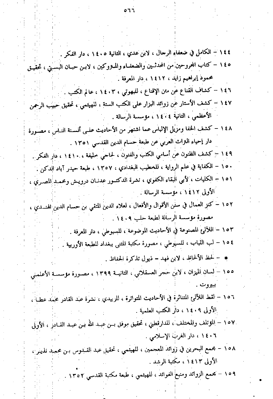 147 - كشف الأستار عن زوائد البزار على الكتب الستة، للهيثمي، تحقيق حبيب الرحمن الأعظمى، الثانية 1404، مؤسسة الرسالة.