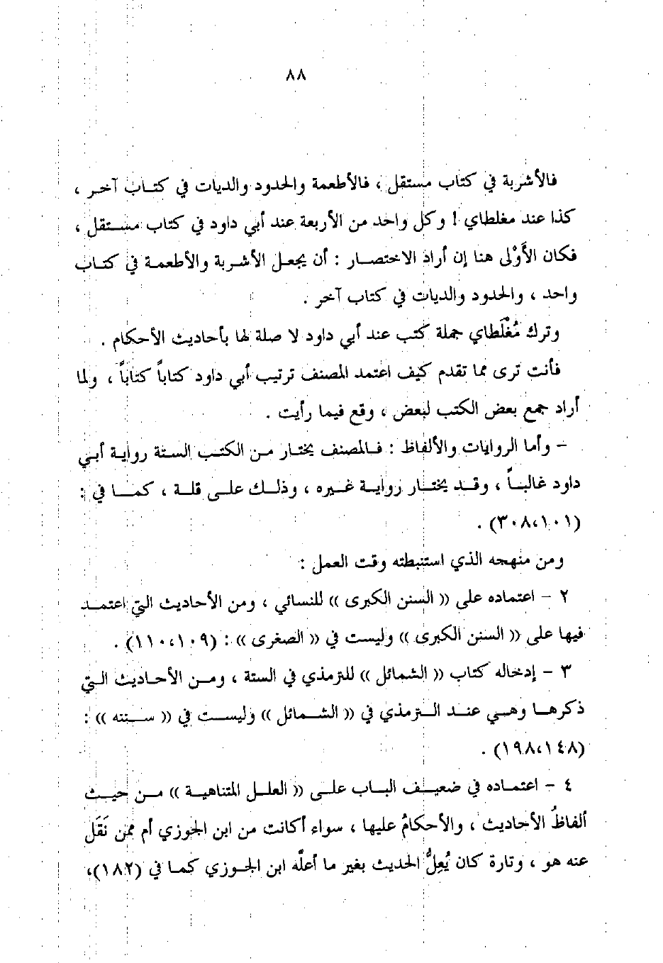 فالأشربة في كتاب مستقل، فالأطعمة والحدود والديات في كتاب آخر، كذا عند مغلطاي! وكل واحد من الأربعة عند أبي داود فِي كتاب مستقل، فكان الأَوْلى هنا إن أراد الاختصار: أن يجعل الأشربة والأطعمة في كتاب واحد، والحدود والديات في كتاب آخر.