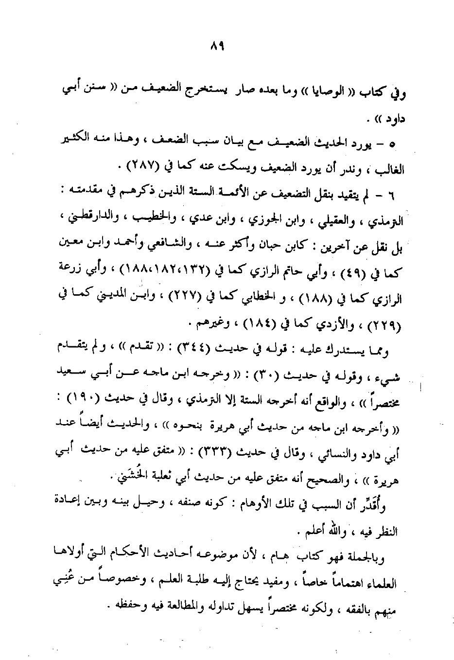 6 - لم يتقيد بنقل التضعيف عن الأئمة الستة الذين ذكرهم في مقدمته: الترمذى، والعقيلى، وابن الجوزي، وابن عدي، والخطيب، والدارقطني، بل نقل عن آخرين: كابن حبان وأكثر عنه، والشَّافعيّ وأحمد وابن معين كما في (49)، وأبي حاتم الرَّازي كما في (132، 182، 188)، وأبي زرعة الرازي كما في (188)، والخطابي كما في (227)، وابن المديني كما في (229)، والأزدي كما في (184)، وغيرهم.