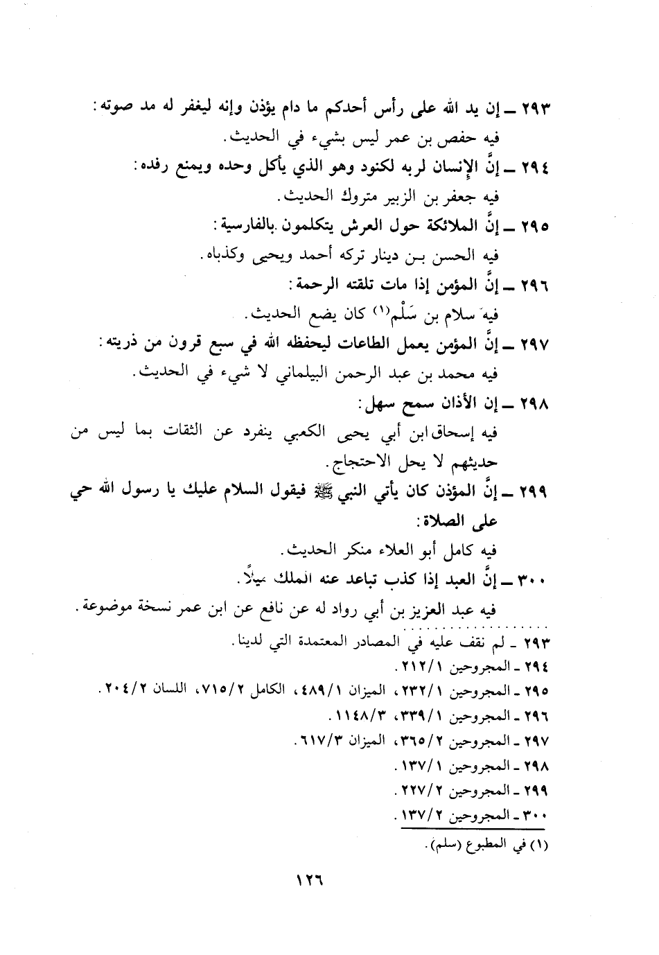 295 - إِن الْمَلَائِكَة حول الْعَرْش يَتَكَلَّمُونَ بِالْفَارِسِيَّةِ: فِيهِ الْحسن بن دِينَار تَركه أَحْمد وَيحيى وكذباه.