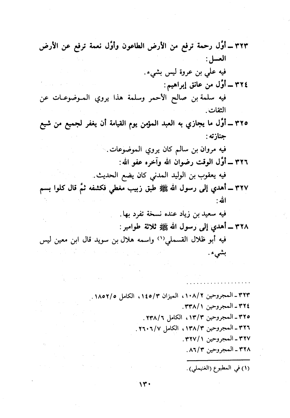 324 - أول من عانق إِبْرَاهِيم: فِيهِ سَلمَة بن صَالح الْأَحْمَر وَسَلَمَة هَذَا يروي الموضوعات عَن الثِّقَات.