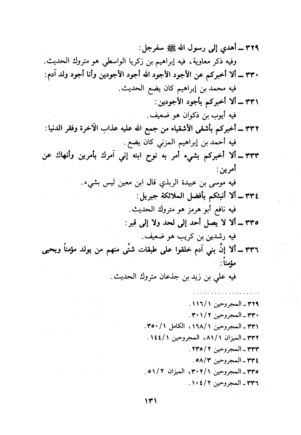 330 - أَلا أخْبركُم عَن الأجود الله أَجود الأجودين وَأَنا أَجود ولد آدم: فِيهِ مُحَمَّد بن إِبْرَاهِيم كَانَ يضع الحَدِيث.